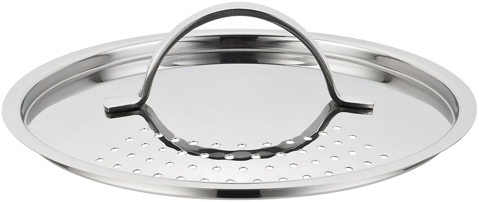 - Кришка з нержавіючої сталі з дренажними отворами для зливу рідини та випуску пари під час приготування
