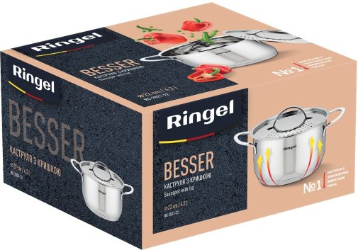 Усі каструлі RINGEL вироблені за найновітнішою технологією зберігання тепла. Потовщене капсульне дно швидко та рівномірно передає тепло страві, що дозволяє скоротити час на приготування та зберегти максимум корисних речовин у стравах, а потовщені стінки каструль RINGEL забезпечують максимально довге утримання страви теплою, без необхідності додаткового розігрівання.