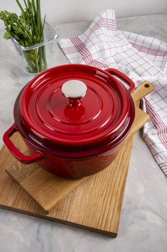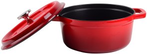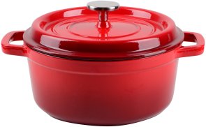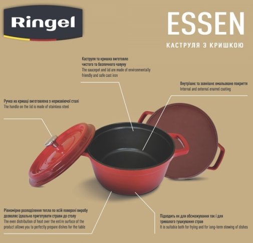 - Каструля та кришка виготовлені з екологічно чистого, безпечного та мегадовговічного чавуну