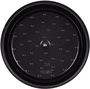 - Кришка має фактурну форму, яка підтримує правильну циркуляцію водяної пари (крапельна циркуляція), завдяки чому страва томиться у власному соусі, залишається соковитою і зберігає свою поживну цінність