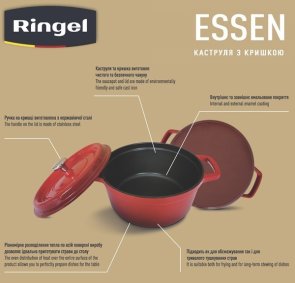 Каструлі серії ESSEN, які мають класичну форму та елегантний дизайн займуть місце у серці кожної господині. Достатньо всього один раз приготувати страви у цих каструлях і відчуття наскільки вона перевершує звичайні каструлі вже ніколи не покине.