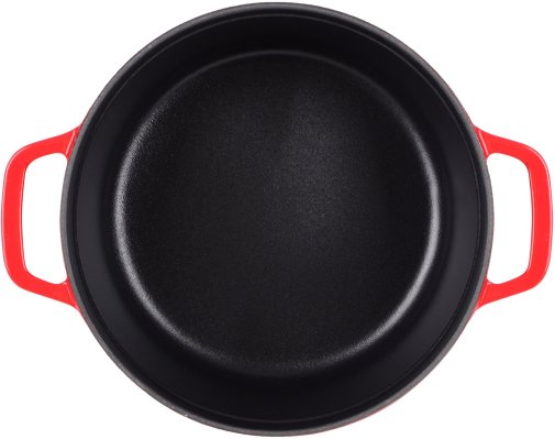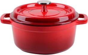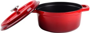 - Каструля та кришка виготовлені з екологічно чистого, безпечного та мегадовговічного чавуну