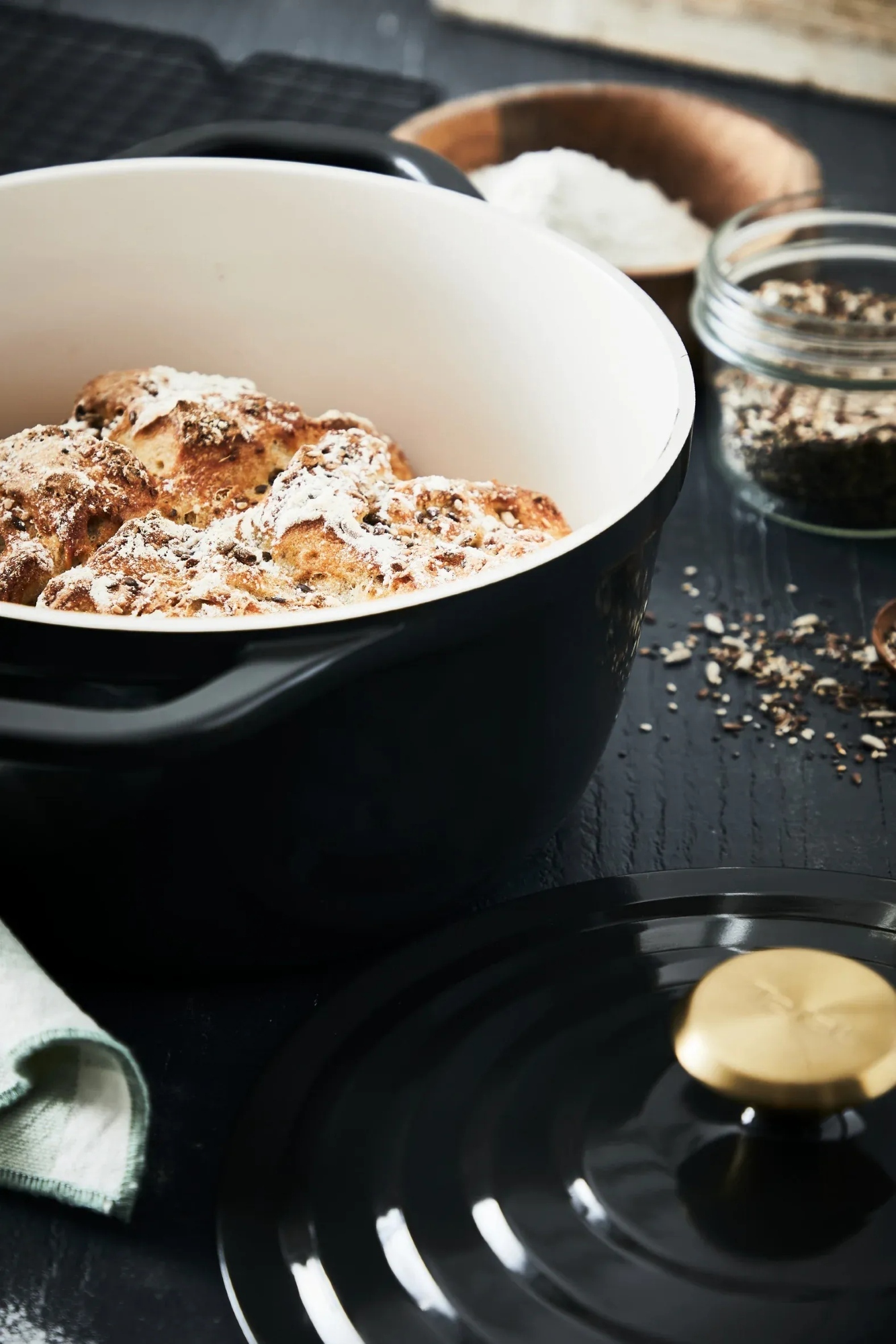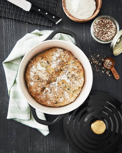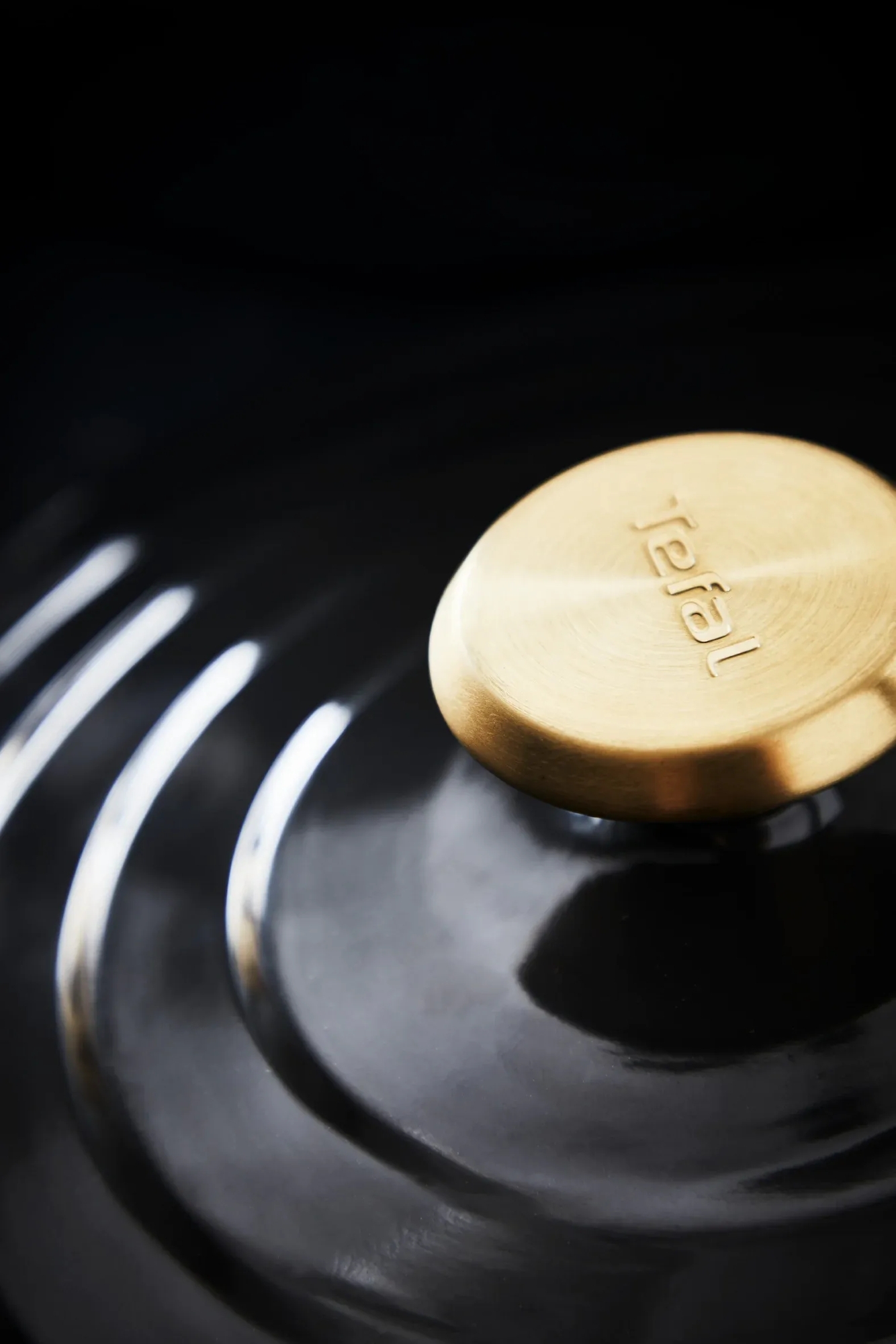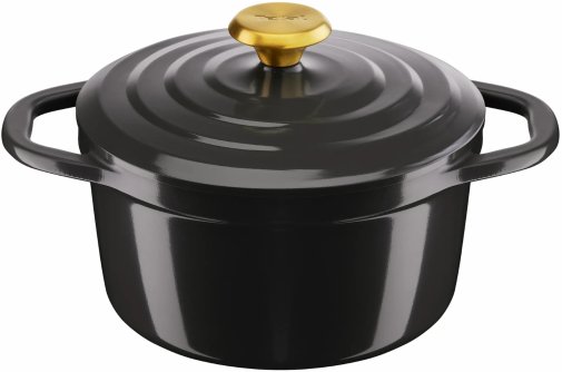 Каструля Tefal Air об’ємом 3,1 л виготовлена з литого алюмінію та має керамічне внутрішнє покриття для зручного щоденного приготування страв. Конструкція значно легша за класичні чавунні моделі, а кришка з конденсаційним ефектом допомагає зберігати соковитість інгредієнтів. Модель сумісна з усіма типами плит, витримує запікання в духовці до 250 °C та підтримує миття в посудомийній машині.