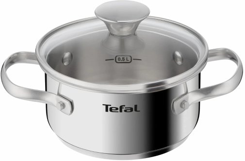 Каструля Tefal Minis діаметром 14 см та об’ємом 1 л створена для щоденного приготування невеликих порцій. Корпус з нержавіючої сталі з багатошаровим дном забезпечує рівномірний розподіл тепла на всіх типах плит, включно з індукцією. Скляна кришка та внутрішні вимірювальні позначки роблять процес приготування більш контрольованим і зручним, а можливість миття в посудомийній машині спрощує догляд.