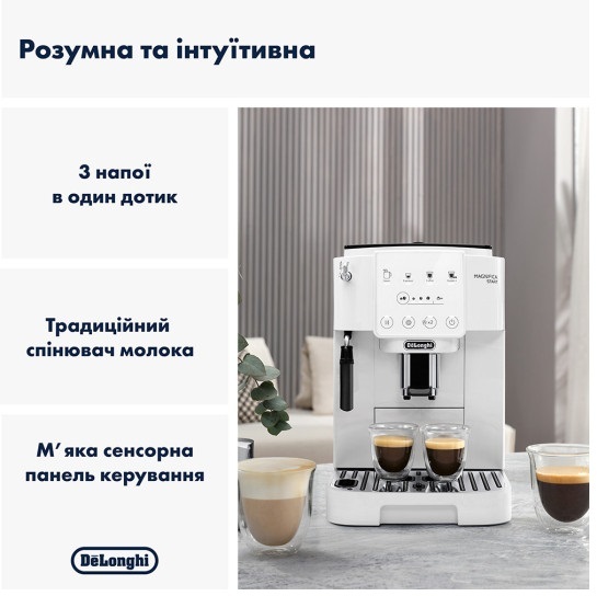 Автоматична кавова машина DeLonghi ECAM 220.21.BG Magnifica Smart приготує вам ароматну каву, яка своїм смаком перенесе вас в справжню італійську кав`ярню. Вона дозволяє приготувати ароматний еспресо, смачний капучино та лате макіато одним натисканням кнопки. Прилад оснащений потужною помпою з тиском у 15 бар та можливість вибору 13 ступенів помелу. Резервуару для води місткістю у 1.8 л повністю вистачає для великої компанії. Зручний інтерфейс та простоту керування неодмінно порадує поціновувачів кавових напоїв.