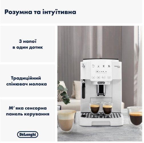 DeLonghi ECAM 220.21.BG Magnifica Smart пропонує чотири запрограмовані рецепти в один дотик для максимальної зручності: Steam, Espresso, Coffee та Doppio+.