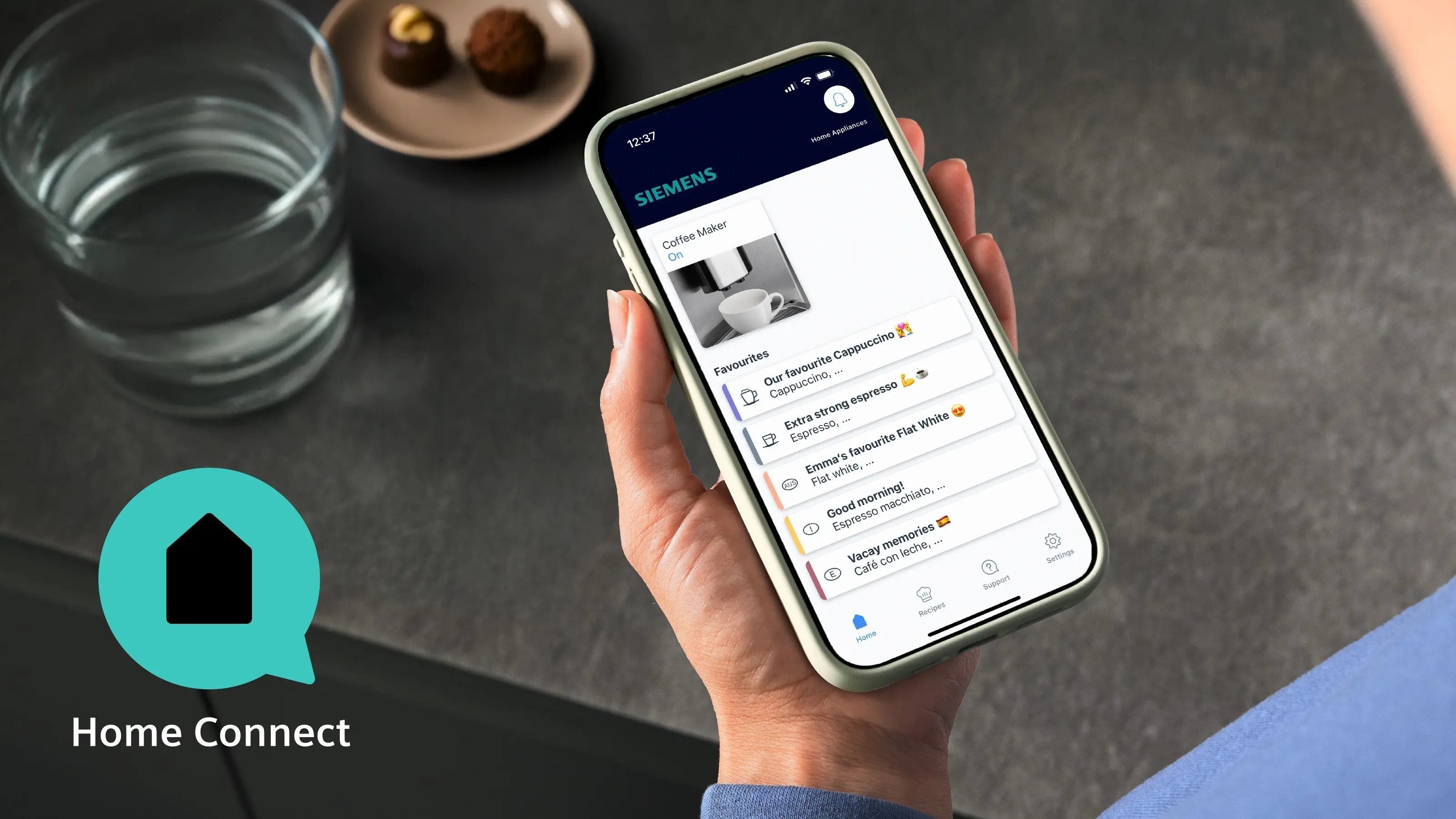 Кавомашина підтримує функцію Home Connect для керування зі смартфона: налаштовуйте напої, встановлюйте розклад та отримуйте нагадування про технічне обслуговування в будь-який зручний момент. Вбудований Wi-Fi забезпечує стабільне підключення без зайвих налаштувань.