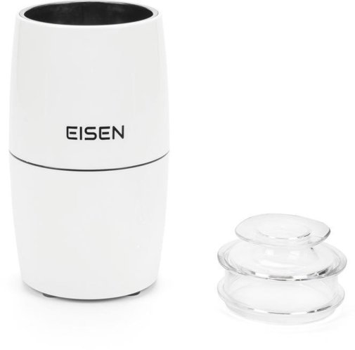 Сучасна модель кавомолки EISEN ECG-025 представлена у білому кольорі. Ергономічна форма та продуманий дизайн створюють комфортне та надійне користування приладом. Корпус виготовлений із якісного пластику, а ножі – із міцної нержавіючої сталі. Прозора кришка допомагає регулювати рівень помелу в процесі роботи пристрою. Кавомолка відрізняється компактністю та легкістю, займаючи мінімум місця на кухні.
