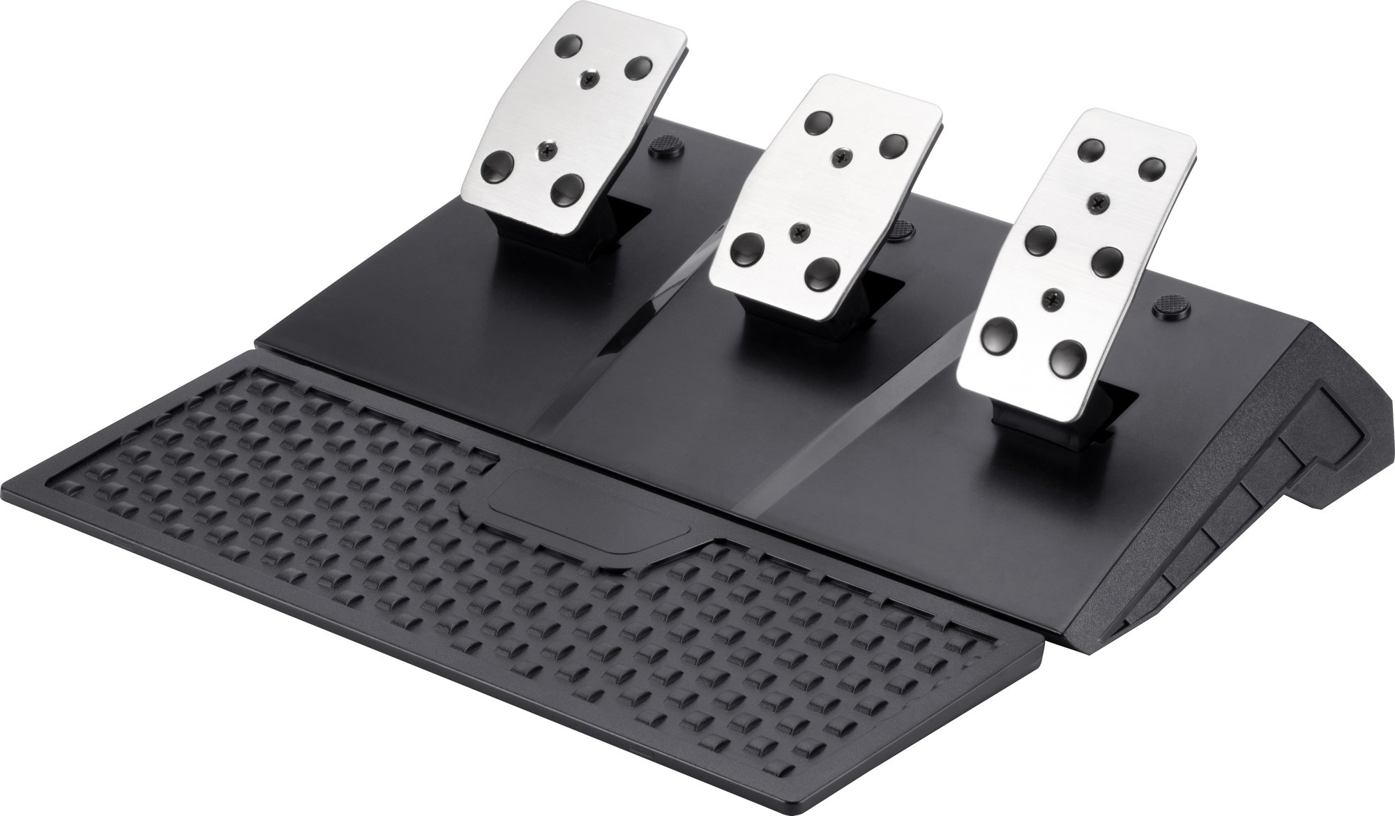 Два потужні вібродвигуни сукупною потужністю 48 Вт забезпечують дивовижний крутний момент до 3,2 Нм для неймовірно реалістичних відчуттів. Кермо має повний спектр обертання в 1080°, що відповідає трьом повним обертам від упору до упору як у справжньому автомобілі. Металеві педалі з антиковзним покриттям забезпечують надійність та довговічність при інтенсивному використанні.
