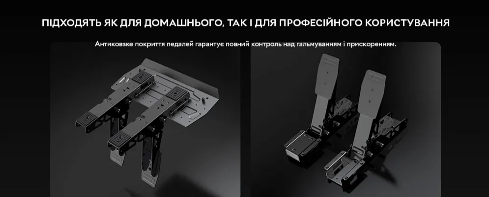 Педалі виготовлені з високоміцної сталі. Налаштування в режимі реального часу можна вносити на льоту за допомогою мобільного додатку MOZA, включаючи безпроблемне перенесення налаштувань на нові пристрої. Інноваційний X-подібний дизайн бази не лише виглядає стильно, а й сприяє ефективному охолодженню та стабільній роботі. Для оптимальної ергономіки педалі можна легко розташувати та налаштувати для максимального комфорту та доступності.