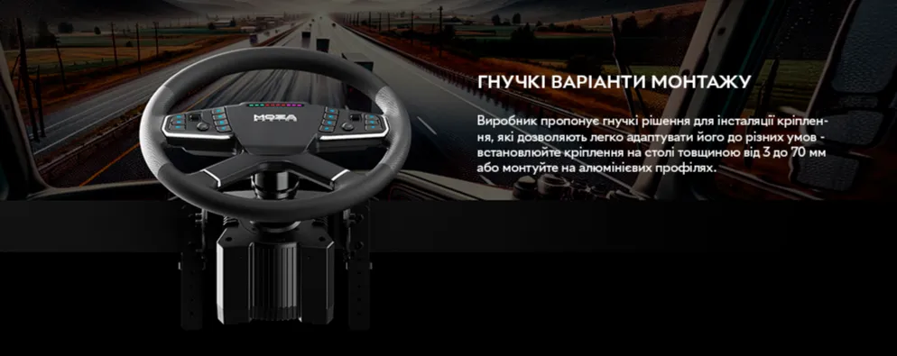Комплект MOZA Trucking Bundle — це повноцінне рішення для шанувальників симуляторів вантажних перевезень, яке забезпечує неперевершену реалістичність і занурення у віртуальне водіння. До набору входять основа R5 з прямим приводом потужністю 5,5 Нм, кермо TSW Truck Wheel, педалі SR-P Lite та спеціальний затискач для надійного кріплення.