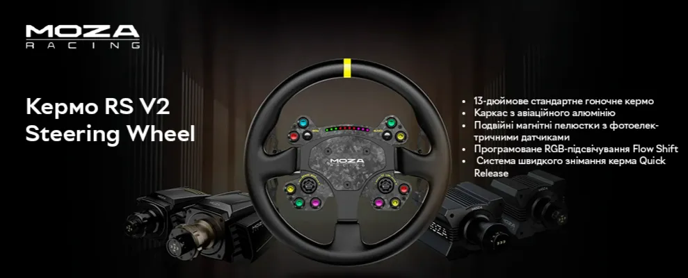 MOZA Racing RS V2 Steering з розмірами справжнього керма пропонує універсальний та реалістичний досвід перегонів.