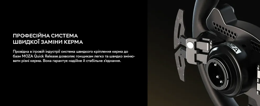 Провідна в ігровій індустрії система швидкого кріплення керма до бази MOZA Quick Release допоможе здійснити швидку заміну керм MOZA без використання інструментів.