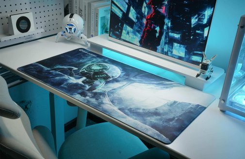 GravaStar килимок виглядає як арктичний камуфляж — агресивно, футуристично й дуже дорого. Розміри 900×450×3 мм дають величезний простір для широких рухів миші — low-sense гравці почуватимуться як удома, рука не втомлюється навіть після багатогодинних рейдів чи тренувань.