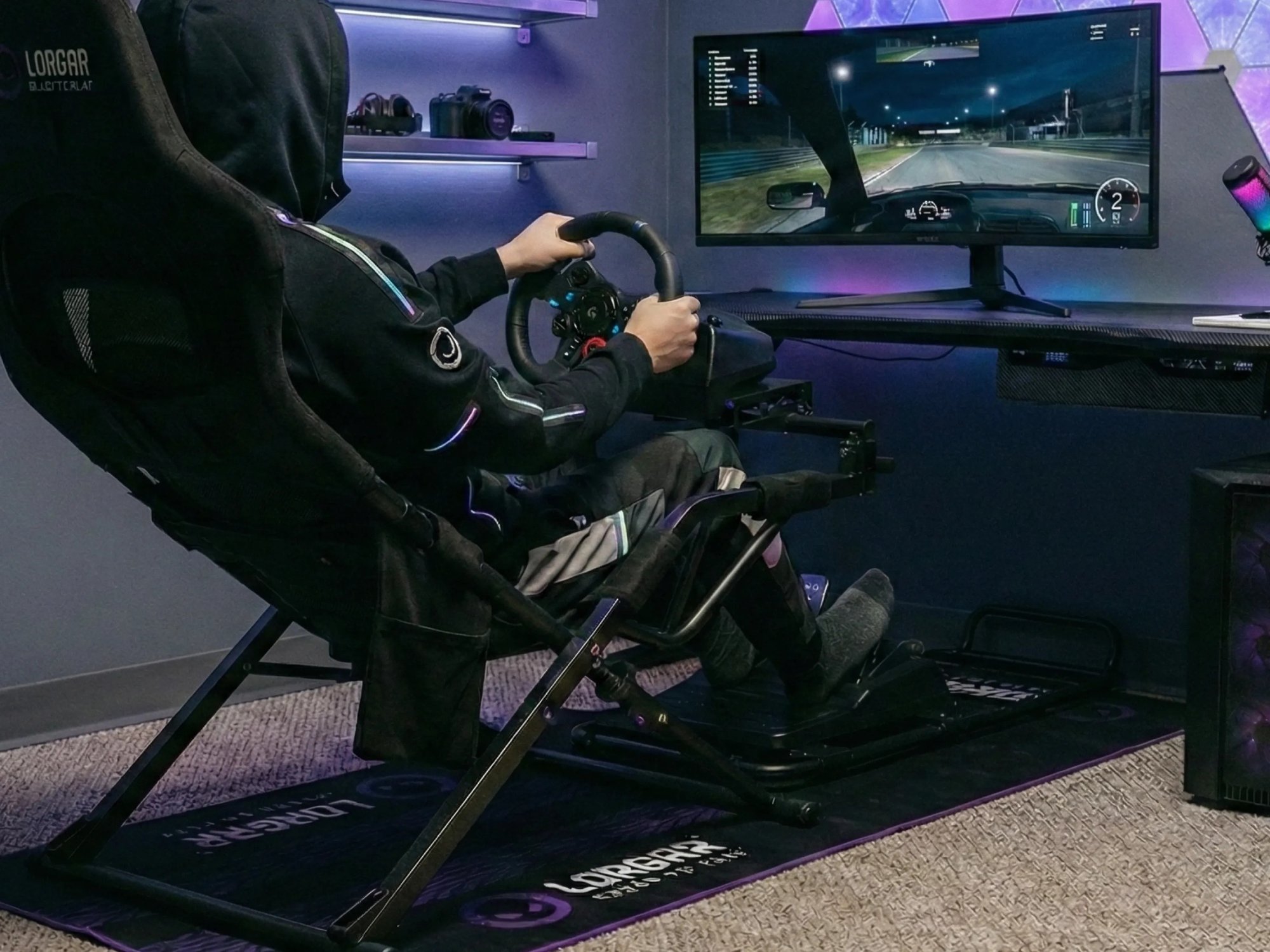 Lorgar RX1FM Sim Racing Floor Mat Advanced — це спеціалізований килимок розміром 1700 × 700 мм, розроблений для sim-рейсерів, яким важливо мати стабільне і захищене робоче місце. Він перетворює будь-яку кімнату на повноцінний гоночний простір, надійно утримуючи все обладнання — кокпіт, підставку для керма та педальний блок — на одному місці.