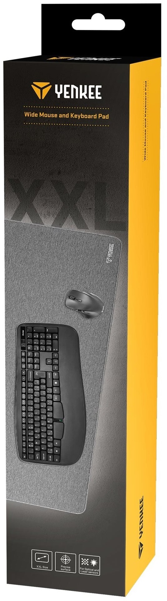 Килимок для миші Yenkee YPM 9040 XXL створений для тих, хто цінує комфорт і точність під час роботи або гри. Його великий розмір XXL дозволяє розмістити не лише мишу, а й клавіатуру, що підвищує стабільність і зручність робочого простору. Передова технологія плетіння поверхні забезпечує оптимальне ковзання миші та надзвичайно точне відстеження рухів, незалежно від типу сенсора — оптичного чи лазерного.