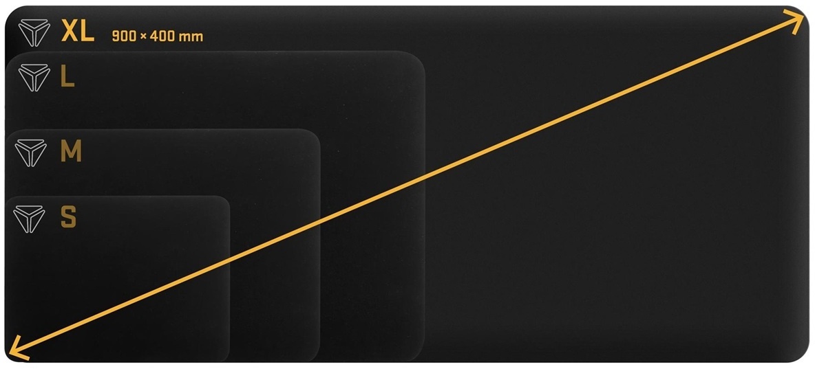 Ця модель має розміри 900 x 400 x 4 мм, що забезпечує достатньо простору для розміщення як миші, так і клавіатури, дозволяючи виконувати швидкі рухи без обмежень, а чорний колір з гладкою поверхнею додає естетики будь-якому ігровому сетапу. Поверхня з мікротканини оптимізована для оптичних та лазерних сенсорів миші, забезпечуючи швидке та точне ковзання без опору, що ідеально для шутерів чи стратегій, де важлива миттєва реакція. Основа з натурального гумового шару з сильним зчепленням запобігає ковзанню килимка по столу, навіть під час інтенсивних рухів, а товщина 4 мм додає амортизації для комфорту зап'ястя.