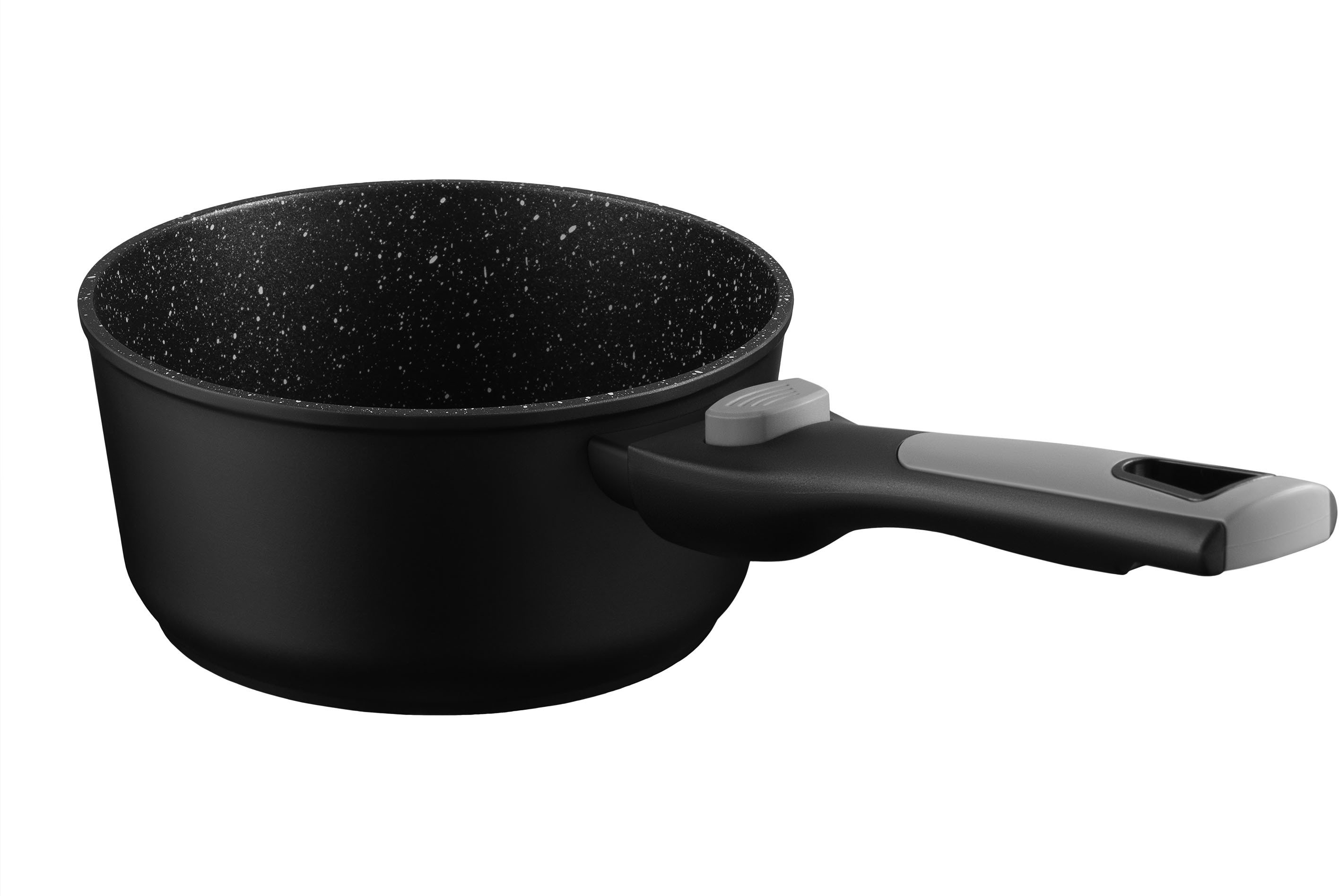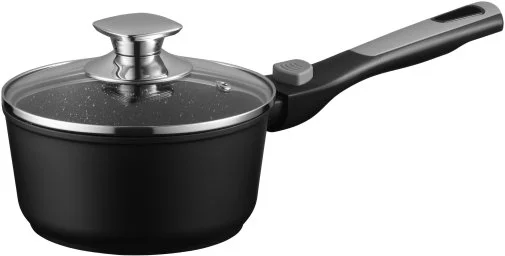 Компактний і надійний ківш Gemini Bari чорного кольору готовий до щоденних кулінарних викликів. Об’єм 1,3 л, діаметр 16 см, товсте дно (4 мм) і стінки (2,6 мм) забезпечують рівномірне нагрівання, а мармурове протипригарне двошарове покриття Xylan Plus – легке готування без зайвого клопоту. Бакелітове руків’я знімне, тож посуд можна використовувати у духовці за температури до 220 °C. Термостійка скляна кришка з отвором для пари забезпечує контроль процесу без втрати тепла. Сумісність із газовими, електричними, склокерамічними, галогенними та індукційними плитами, а також можливість миття в посудомийній машині – це практичність без компромісів.