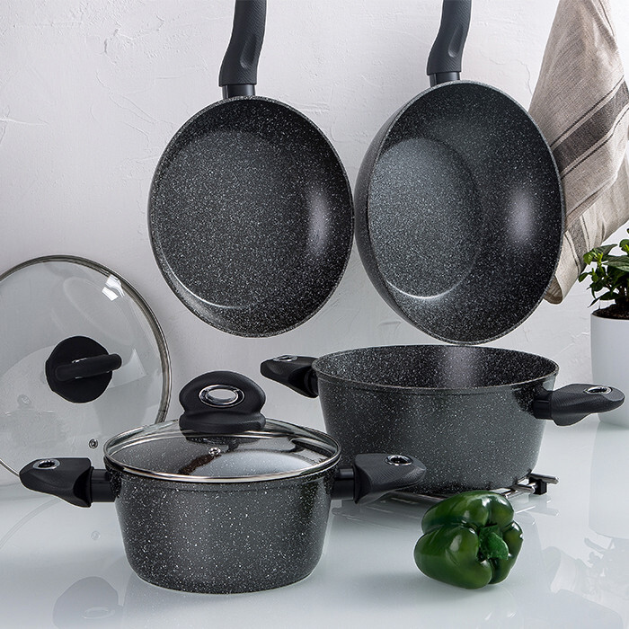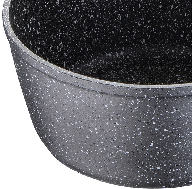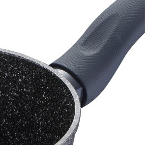 Ківш без кришки з колекції Orion бренду Bergner. Її розміри, 16 см в діаметрі і 7,5 см у висоту, а також місткість 1,23 л роблять її ідеальною для приготування будь-яких індивідуальних рецептів або для двох осіб, дивуючи вашу родину та друзів широким асортиментом страв. Каструля виготовлена з кованого алюмінію, високоякісного та міцного матеріалу, який сприяє швидкому та рівномірному розподілу тепла, запобігаючи появі гарячих точок і, таким чином, заощаджуючи велику кількість енергії. Крім того, цей матеріал надає виробу дуже хороші характеристики легкості, збереження тепла при високих температурах та стійкості до ризику корозії, ударів і подряпин. Каструля має антипригарне внутрішнє покриття Marble+, яке забезпечує більш рівномірне відокремлення їжі, запобігаючи її прилипанню до поверхні та полегшуючи чищення. Крім того, це покриття є надзвичайно міцним і стійким до подряпин. Каструля має індукційну основу, що робить її придатною для всіх типів плит: керамічних, електричних, галогенних, газових та індукційних. Дизайн каструлі, сірий з білими крапками, ідеально підходить для будь-якого типу кухні. Крім того, вона має ергономічну ручку з текстурою зміїної шкіри та м'яким покриттям, яке покращить ваші кулінарні здібності, захищаючи вас від опіків під час користування виробом. Всі ці характеристики роблять її ідеальною для всіх кухарів, від початківців до найдосвідченіших. Для продовження терміну служби виробу рекомендується мити його вручну.