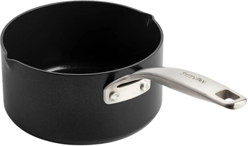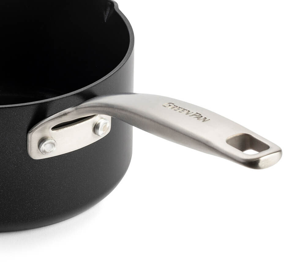 Ковш GreenPan Copenhagen має керамічне антипригарне покриття Thermolon Infinity Pro, яке покращене діамантами та повністю не містить PFAS. Ручка з нержавіючої сталі: міцна заклепкована ручка з нержавіючої сталі, для плити та духовки.