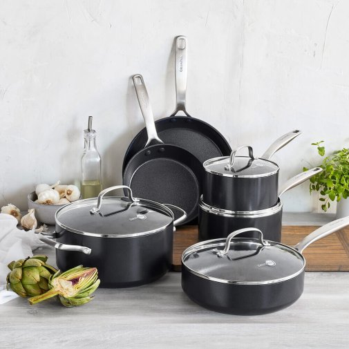 Посуд GreenPan з колекції Copenhagen має дуже велику поверхню та надзвичайну міцність завдяки використанню загартованого алюмінію. Витончений дизайн і матова ручка з нержавіючої сталі надають цій колекції мінімалістичний вигляд.