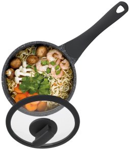 Ківш з кришкою і антипригарним покриттям Kela Stella Nova діаметром 16 см. - універсальний посуд, щоб приготувати їжу на 1-2 чоловік. Адже це так зручно, коли зварити, обсмажити і стушкувати продукти можна в одній і тій же ємності. Причому звірити швидше, ніж в звичайному ковшику, тому що алюміній, з якого зроблений ківш Kela Stella Nova, швидко нагрівається та ефективно передає тепло. Стушкувати продукти можна також швидше. Завдяки щільно прилягаючій кришці з клапаном для скидання надлишкового пару всередині створюється ефект скороварки. Крім того, особлива форма ковша допомагає рівномірно розподілити жар по всій поверхні. Смажити в ковшику Kela Stella Nova можна з мінімальною кількістю жиру (а в деяких випадках і без нього) - сучасне антипригарне покриття не дозволить продуктам прилипнути до денця і стінок ковша, та пригоріти.