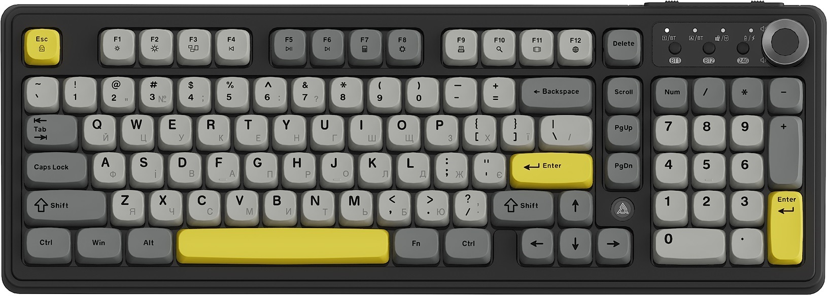 Клавіатура Ajazz AF98 Plus USB/WL/BT Black/Gray/Yellow (AF98-PLUS-BGY)