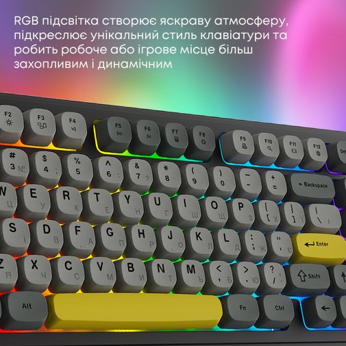 Повноцінне RGB-підсвічування додає клавіатурі яскравого сучасного вигляду та дозволяє комфортно працювати в умовах слабкого освітлення, підлаштовуючи атмосферу під власний стиль.