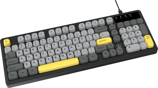 Мембранний механізм клавіш забезпечує м’яке натискання та низький рівень шуму, що особливо зручно під час тривалого друку або нічного використання. Клавіші з ABS-пластику приємні на дотик і добре підходять для щоденної інтенсивної експлуатації.