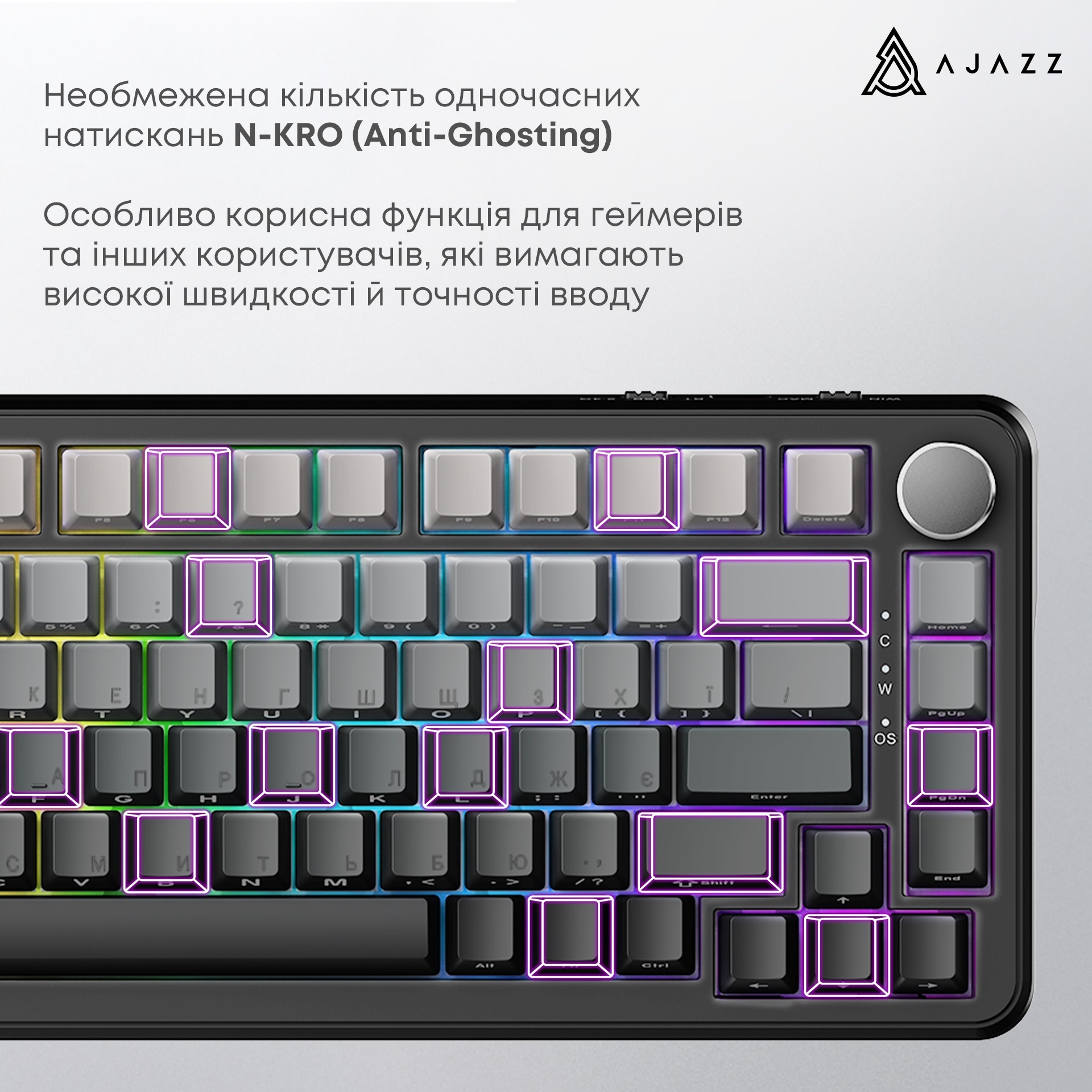 Ajazz AK820 MAX — сучасна дротова магнітна клавіатура, що поєднує преміальний дизайн, високу швидкість відгуку та продуману конструкцію для геймінгу й професійної роботи.