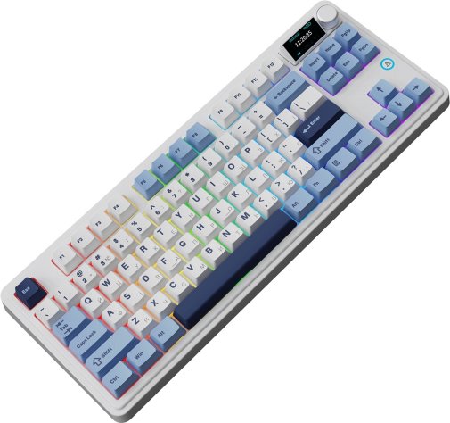 Ajazz AK870 Plus оснащена лінійними перемикачами Murad Switch (загальний хід 3.5 мм, попередній хід 2.0 мм, сила натискання 45 г), які забезпечують плавне, легке та тихе натискання, ідеальне для швидких реакцій у змагальних іграх, таких як шутери чи MOBA, а також для комфортного набору тексту. Частота опитування 8000 Гц у дротовому режимі (затримка 0.125 мс) та 1000 Гц у бездротовому гарантує блискавичну реакцію. Компактний формат економить місце на столі, зберігаючи всі необхідні клавіші, включаючи стрілки та функціональні клавіші, а також оснащений багатофункціональним поворотним регулятором для керування гучністю чи підсвічуванням. Інноваційний гаряче замінний TFT-дисплей (1.06 дюйма) дозволяє відображати статус батареї, час, режим підключення чи власні GIF-анімації, з можливістю заміни на стандартні клавіші (Print Screen, Scroll Lock, Pause). Підтримка Hot-Swap забезпечує легку кастомізацію, а NKRO гарантує точне спрацьовування всіх клавіш. Трирежимне підключення (Bluetooth 5.1, 2.4 ГГц через USB-приймач, USB-C) забезпечує сумісність із Windows, Mac, Android і iOS, а акумулятор місткістю 8000 мАг підтримує до 20 годин роботи з увімкненим підсвічуванням.