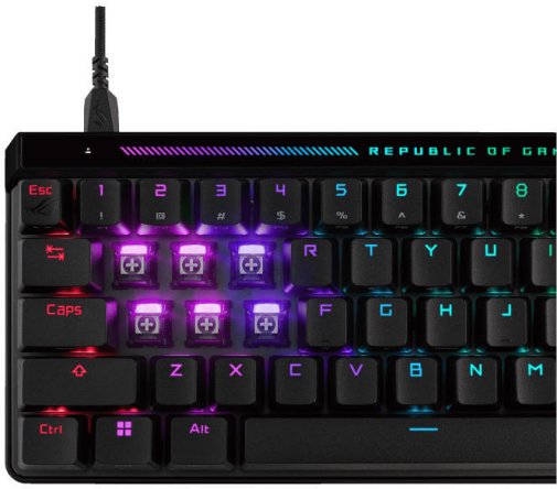 Клавіатура оснащена спеціальними стабілізаторами перемикачів ROG для забезпечення плавного натискання і стабільності ходу довгих клавіш. Falchion Ace HFX має два порти USB-C з обох боків на задній грані, що дає змогу оперативно підключати клавіатуру навіть до двох комп’ютерів одночасно й швидко перемикатися між ними.