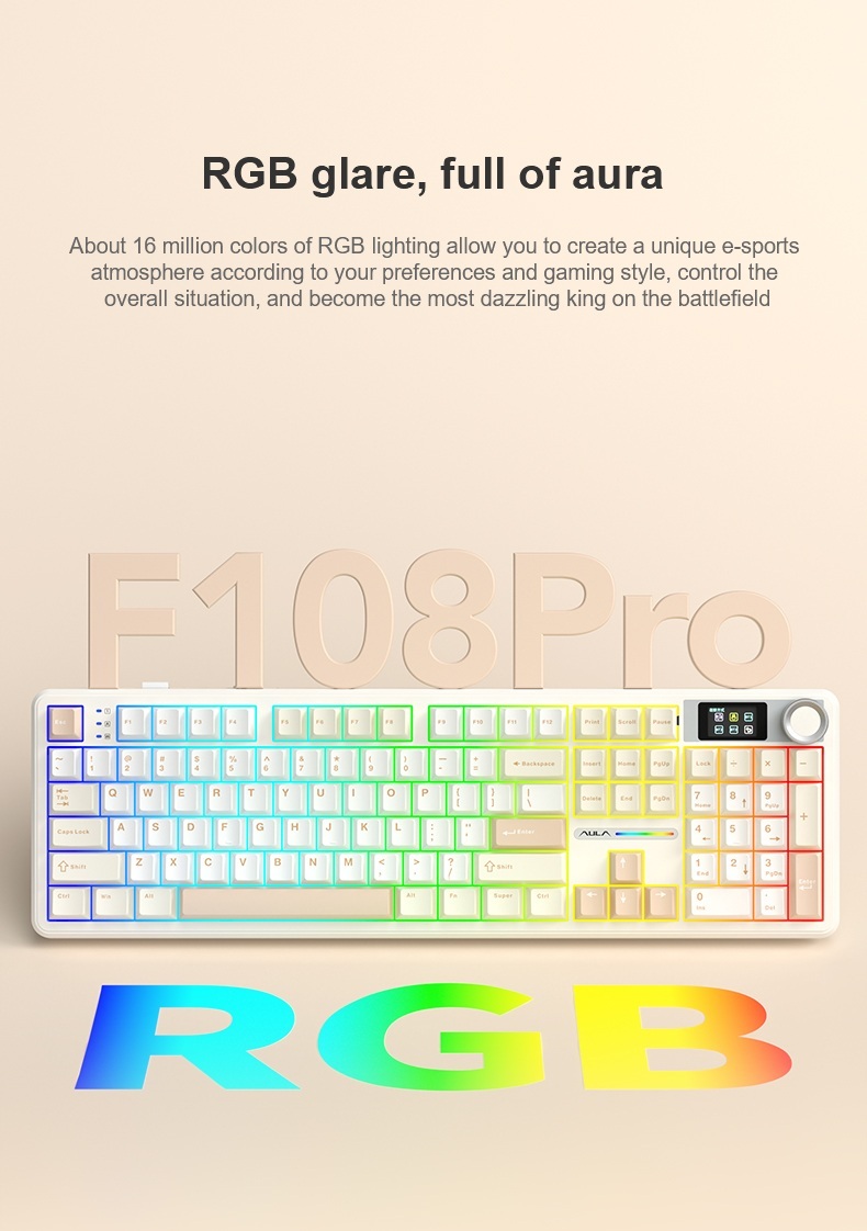 AULA F108PRO Mechanical Keyboard — це високопродуктивна повнорозмірна механічна клавіатура з рядом сучасних функцій, що забезпечують чудову роботу як в іграх, так і в повсякденних завданнях.
