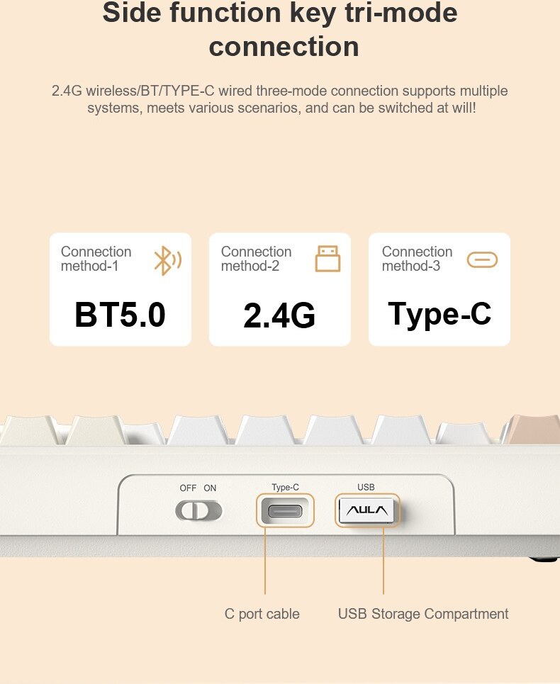 Tri-Mode (три режими) — плавне перемикання між усіма способами підключення для максимальної зручності.