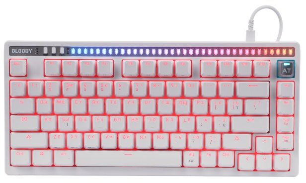 Клавіатура Bloody AT75 — це оптична ігрова клавіатура з USB-підключенням та RGB-підсвічуванням, створена для високопродуктивних геймерів. Вона оснащена Alpha Optical Switch — першими оптичними перемикачами Bloody, що забезпечують точні налаштовані точки спрацьовування та ідеальний тактильний відгук, дозволяючи миттєво реагувати в ігрових сценах.