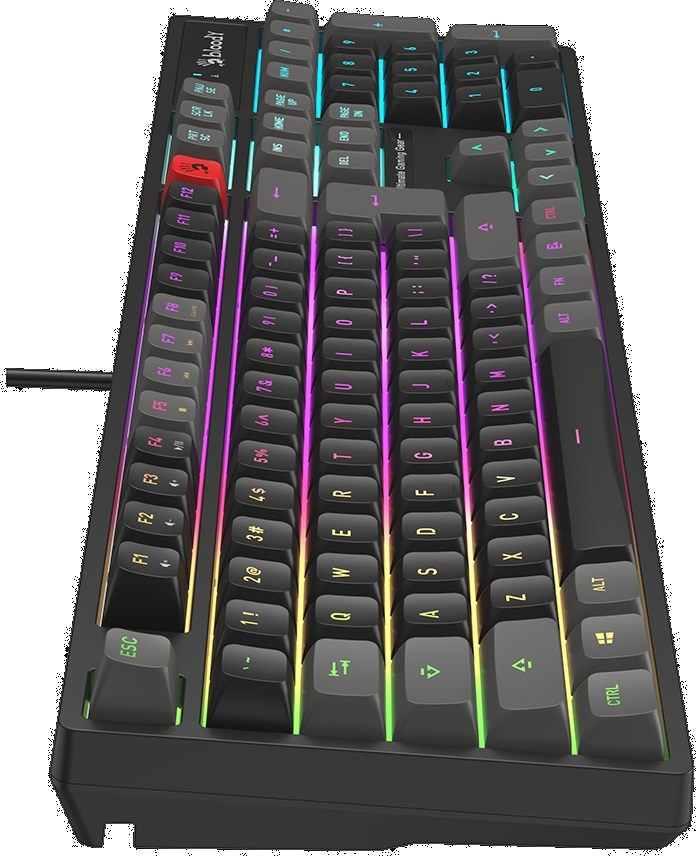 Підсвічування клавіш у неоновому стилі регульоване за яскравістю та ефектами, що дозволяє налаштувати атмосферу під гру чи нічний режим. Кейкапи з подвійним нанесенням символів не стираються з часом, а посилений пробіл, закріплений гвинтами, витримує інтенсивне використання. Час відгуку клавіші 1 мс та підтримка N-key rollover забезпечують точне розпізнавання будь-якої комбінації натискань, що критично важливо в динамічних іграх.