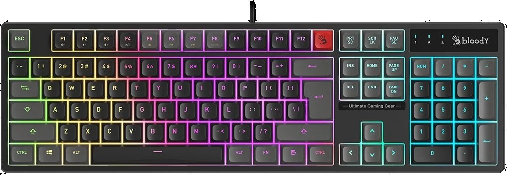 Клавіатура Bloody B230N — це ігрова модель з неоновим підсвічуванням літер, створена спеціально для геймерів-початківців та тих, хто шукає надійний пристрій для комфортного геймінгу. Вона поєднує швидкий відгук, захист від випадкових натискань та зручні функції для щоденного використання.