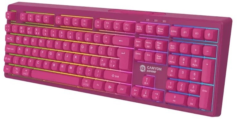 Бездротова мембранна клавіатура Canyon Fortnax GKW-2 створена для універсального використання в роботі, іграх і творчих завданнях. Вона підтримує три режими підключення: бездротовий 2,4 ГГц, два Bluetooth-канали та дротовий режим, що дозволяє легко перемикатися між комп’ютером, планшетом чи телефоном для безперебійної роботи.