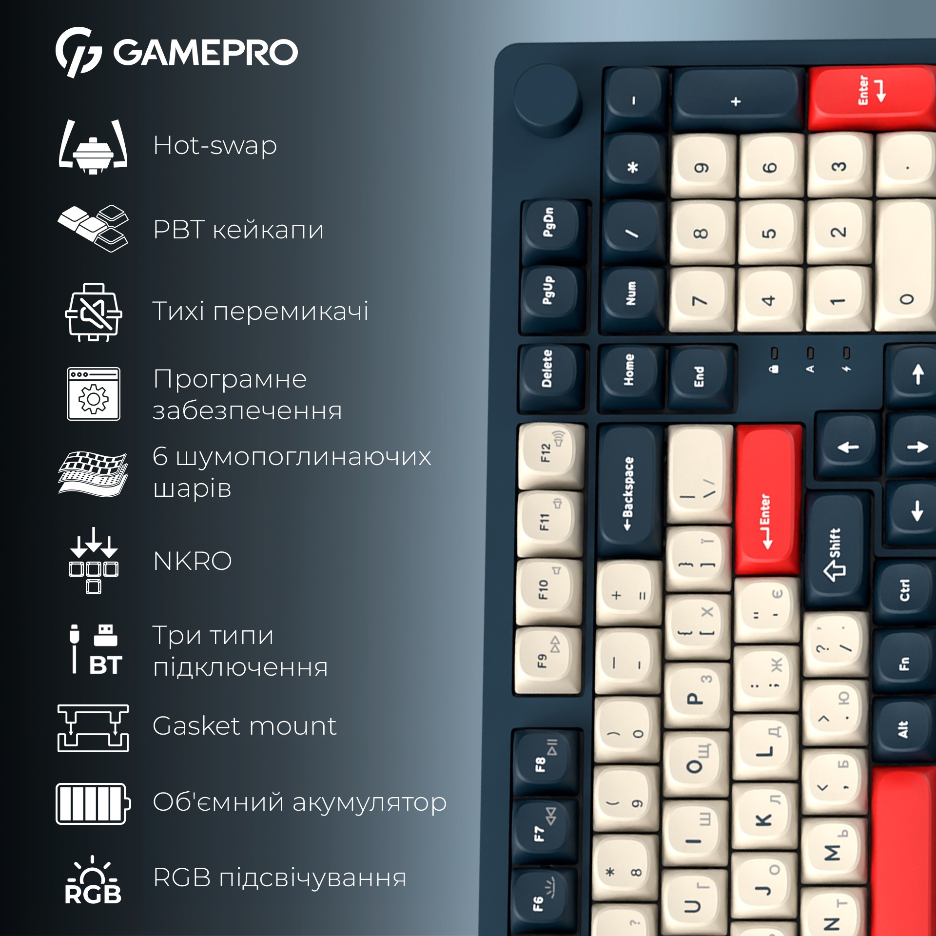 Клавіатура GamePro Asgard Drakkar MK305BL WL/BT/USB Blue Клавіатура GamePro Asgard Drakkar MK305BL WL/BT/USB Blue
