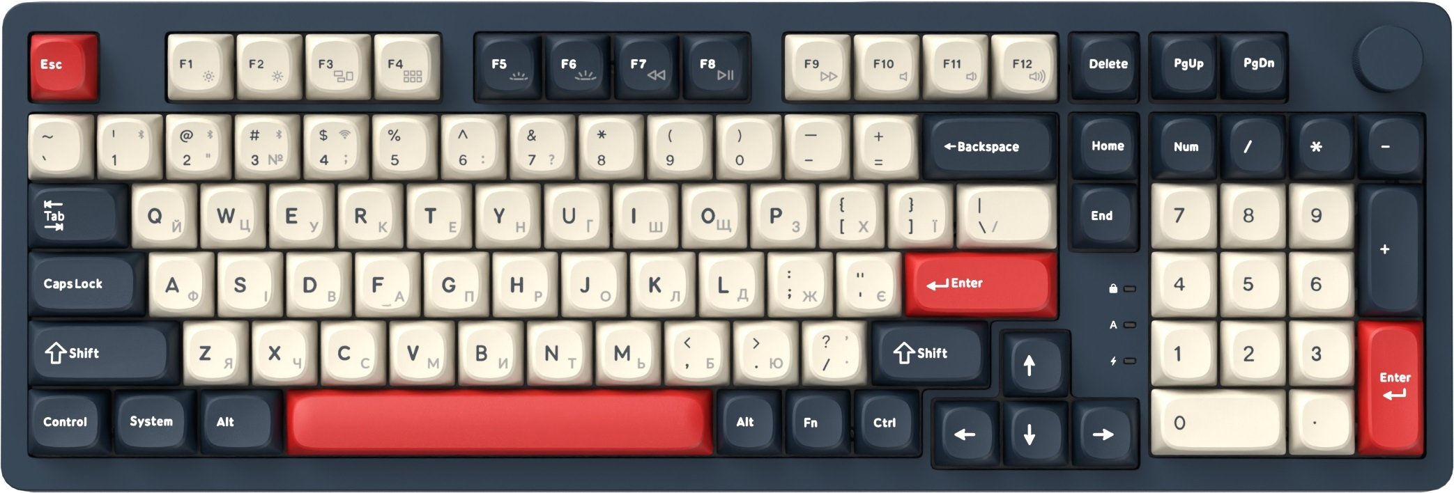 GamePro Asgard Drakkar — це потужна бездротова механічна клавіатура, яка поєднує в собі повнорозмірну функціональність із компактністю. Її 96% формфактор зберігає повноцінний набір клавіш, включно з цифровим блоком, але при цьому займає значно менше місця на столі порівняно з класичними повнорозмірними моделями. Такий розмір робить Drakkar ідеальним вибором для тих, хто хоче мати всі необхідні клавіші під рукою, не жертвуючи робочим простором.