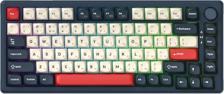 Клавіатура працює як у дротовому режимі через USB-C, так і у двох бездротових форматах: Bluetooth 5.2 та 2.4 ГГц за допомогою ресивера. Акумулятор місткістю 4000 мА·год забезпечує тривалу автономну роботу. Модель оснащена RGB-підсвічуванням із широким набором ефектів, що дозволяє налаштувати індивідуальний стиль для роботи чи ігор.