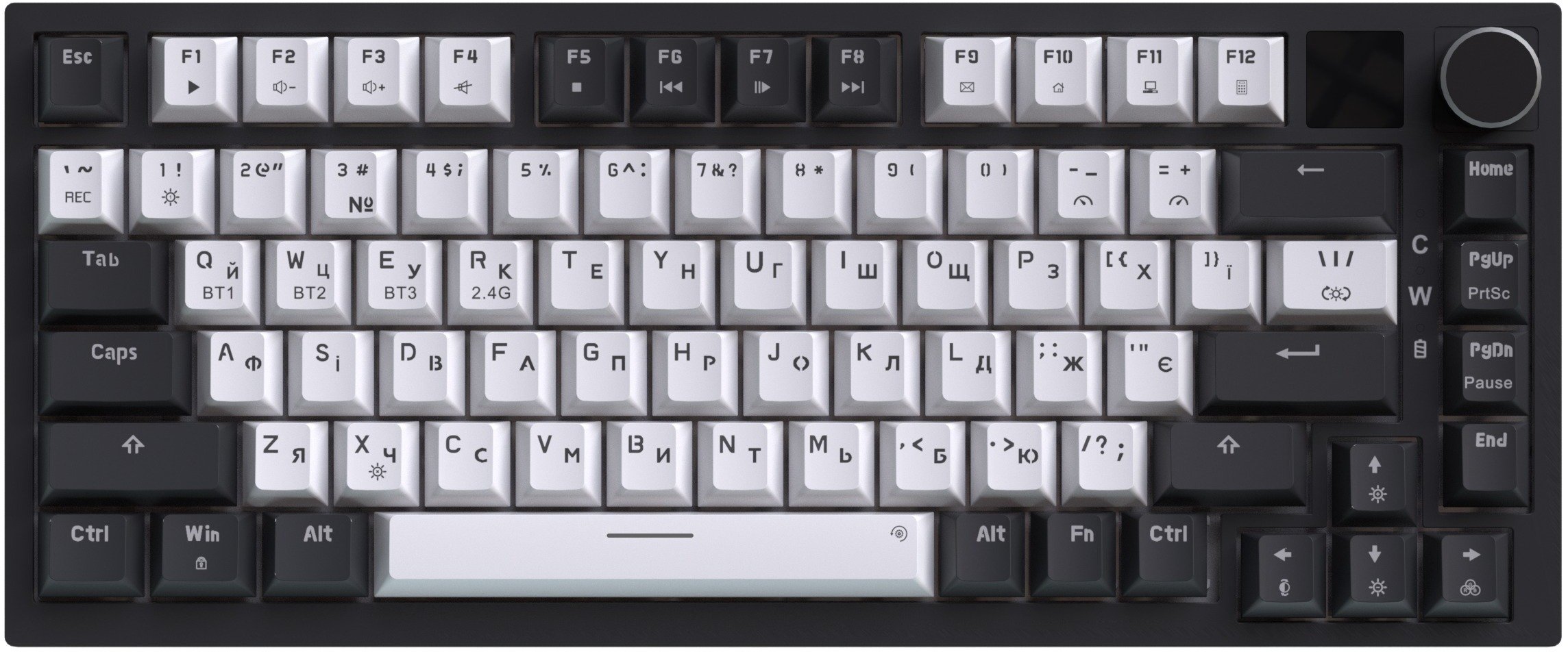 Сучасний TFT-дисплей додає шарму та практичності: він миттєво показує активний режим підключення, рівень заряду батареї, обраний профіль і ефекти RGB-підсвітки, дозволяючи керувати всім без відкриття софту. Підсвічування з безліччю варіантів кольорів і ефектів не тільки підкреслює естетику, але й покращує видимість у темряві, роблячи набір тексту чи прицілювання в грі максимально зручним.