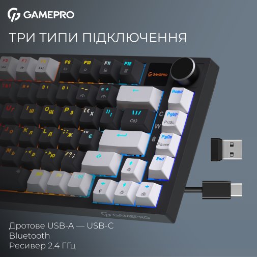 Універсальність підключення робить Valhalla Pro справжнім лідером у своєму класі. Користувач зможе обирати між стабільним дротовим режимом через USB Type-C, швидким бездротовим 2.4G з низькою затримкою або Bluetooth для безшовної інтеграції з кількома пристроями. Кабель довжиною 1,8 м забезпечує свободу рухів, а радіоадаптер гарантує надійність навіть у динамічних умовах гри.