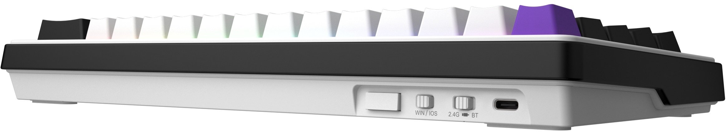 Клавіатура підтримує три режими підключення: класичний дротовий, бездротовий 2.4 ГГц та Bluetooth — це дозволяє легко перемикатися між пристроями та працювати в будь-яких умовах. ABS-кейкапи подвійного лиття вирізняються високою зносостійкістю: написи на клавішах не стираються навіть після багатьох років активного використання. Додатково передбачена функція гарячої заміни перемикачів, що відкриває широкі можливості для кастомізації під індивідуальні вподобання.