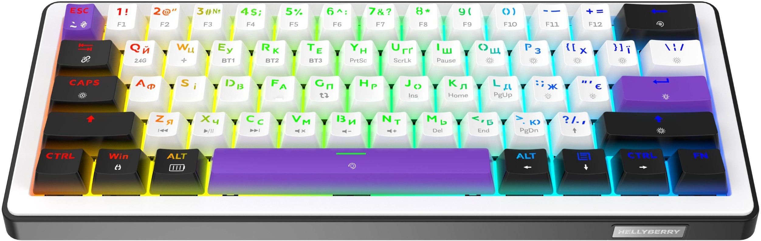 Візуальна складова також на висоті: RGB-підсвічування з 16,8 мільйонами кольорів працює для кожної клавіші окремо, а додаткові бічні зони підсвічування додають ефектності. Через фірмовий софт доступні розширені налаштування ефектів, макросів та профілів. Hator Hellyberry HK60 поєднує в собі тишу, швидкість, автономність та можливості персоналізації — це сучасна клавіатура для вимогливих користувачів.
