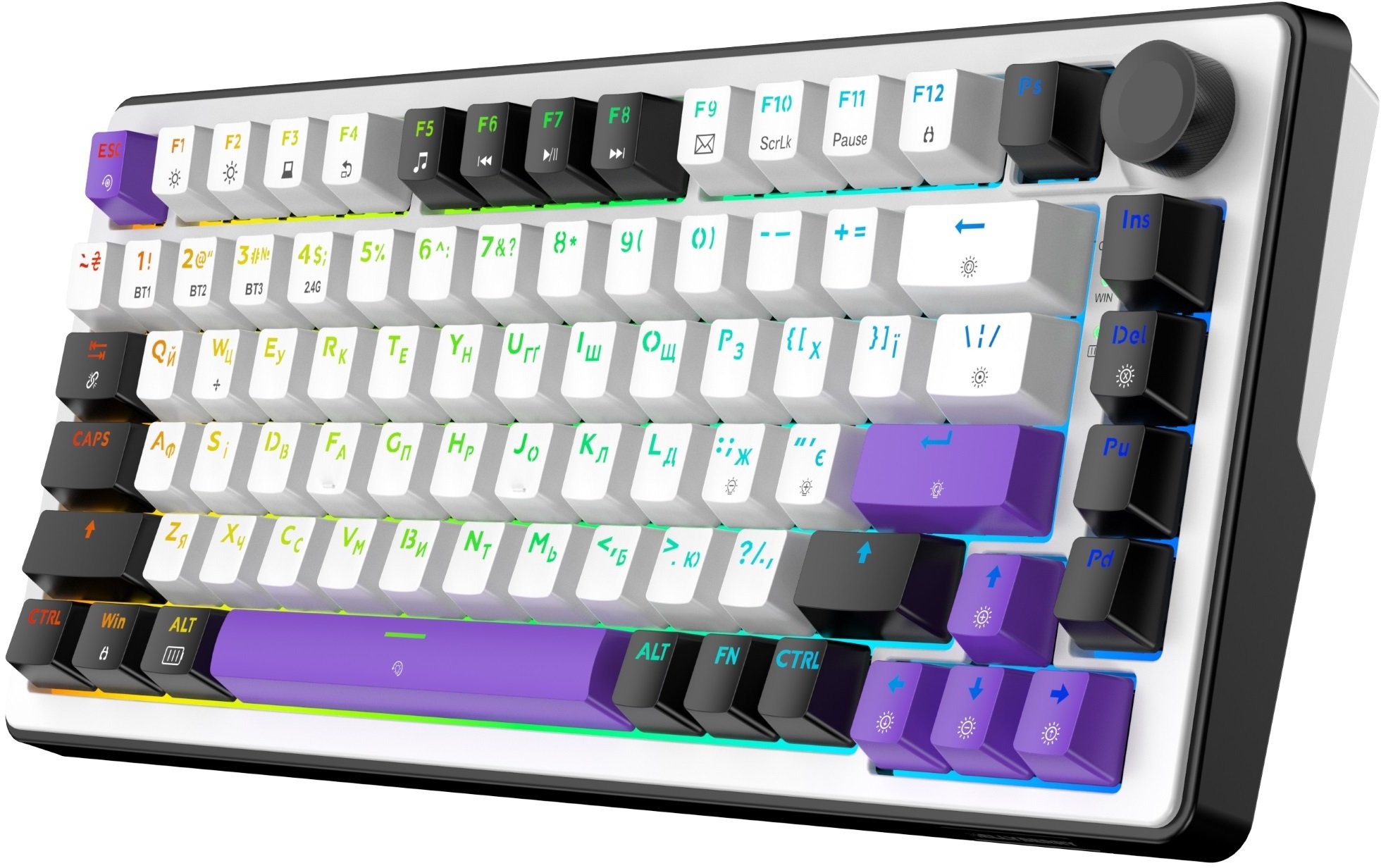 Клавіатура пропонує три зручні режими підключення: класичний дротовий, швидкий бездротовий 2.4 ГГц та універсальний Bluetooth. Це дозволяє легко перемикатися між пристроями — від ПК і ноутбука до планшета чи смартфона — без зайвих кабелів. Вбудована пам’ять зберігає всі ваші налаштування, тому персональні профілі працюватимуть скрізь, де б ви не підключили клавіатуру.
