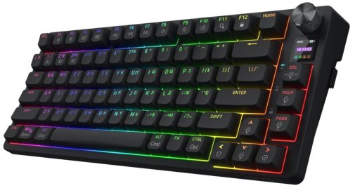 Унікальною особливістю клавіатури є вбудований кольоровий TFT-екран, який відображає корисну інформацію та основні параметри, як-от режим підключення, заряд батареї, активні профілі та налаштування. Крім того, дисплей підтримує завантаження власних зображень або анімації, дозволяючи персоналізувати клавіатуру відповідно до індивідуального стилю. Яскравість і режими відображення екрану можна налаштувати за допомогою програмного забезпечення або комбінацій клавіш.