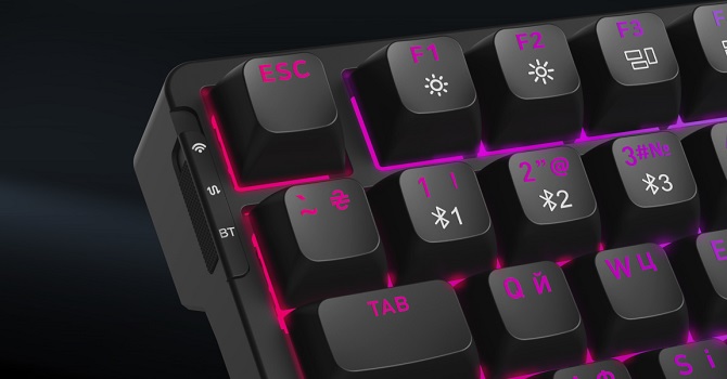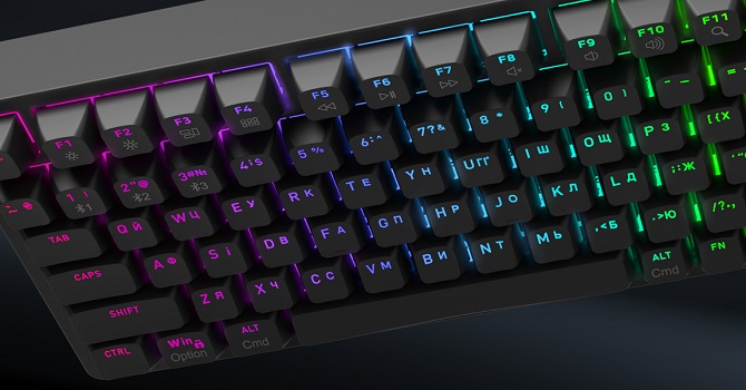 Технології для геймінгу представлені функціями 100% Anti-ghosting та N-Key Rollover, що гарантують точну реєстрацію всіх одночасних натискань, незалежно від їх кількості — критично важлива перевага в динамічних іграх. Алюмінієве колесо для регулювання гучності з функцією Mute при натисканні додає зручності при роботі з мультимедійним контентом, а програмовані функціональні клавіші розширюють можливості керування системою одним дотиком.