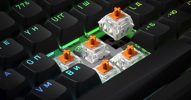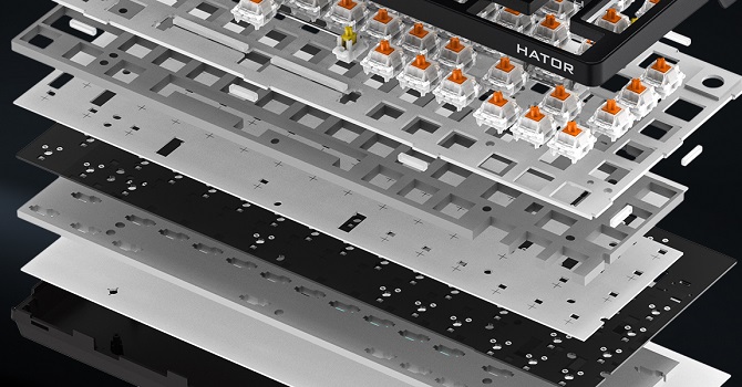 Попередньо змащені механічні лінійні перемикачі HATOR Aurum Orange ver.2.0 забезпечують плавний, приємний хід клавіш. Вони виготовлені на нейлоновій базі з стемом з POK пластику, а контакти покриті композитним золотом для підвищеної довговічності. Кожне натискання точно реєструється та приносить задоволення від друку завдяки ідеально збалансованому зусиллю активації та швидкому відгуку. Одна з найцінніших особливостей клавіатури — система гарячої заміни перемикачів, яка дозволяє користувачам без паяння та спеціальних інструментів замінювати перемикачі для кастомізації відповідно до своїх уподобань. Ця функція відкриває широкі можливості для експериментів з різними типами перемикачів та створення індивідуального відчуття від набору тексту.