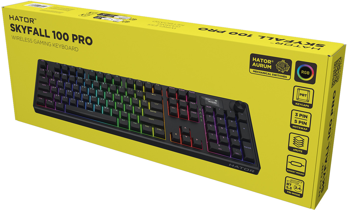 HATOR Skyfall Pro Wireless — це ігрова клавіатура преміального класу, яка поєднує елегантний дизайн із розширеною функціональністю. Вона оснащена надзвичайно тихими механічними перемикачами HATOR Aurum Vanilla Silent, що забезпечують плавний і комфортний тайпінг без зайвого шуму.